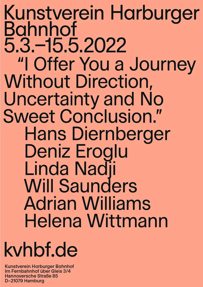Der disruptive Moment des kollektiven Kontrollverlustes, der sich mit dem Ausbruch der Corona-Pandemie eingestellt hat, ist Ausgangspunkt für die Gruppenausstellung I Offer You a Journey Without Direction, Uncertainty and No Sweet Conclusion. Das Gefühl von Unsicherheit und die Erkenntnis, die eigenen Pläne – private, berufliche, gesellschaftliche – nicht mehr in der Hand zu haben, prägen unser Leben bis heute. Zugleich stellen sich die Fragen, ob Kontrolle nicht auch schon vor der Pandemie eine Illusion war und Planungssicherheit ohnehin nur ein Privileg von wenigen Menschen ist. Die Ausstellung vereint künstlerische Positionen, die sich dem Thema Reise als Moment der Ungewissheit, des Ausgeliefertseins oder Festsitzens nähern und zur Kontemplation einladen. Sie alle operieren mit narrativer Offenheit und reflektieren über Unberechenbarkeit und Unsicherheit als Potenzial für Neuorientierung.